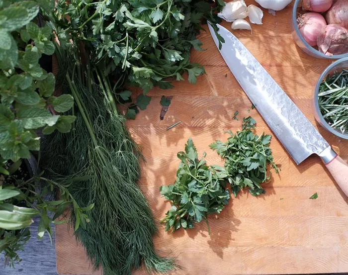 • 1 Handvoll Dill, Petersilie und Basilikum